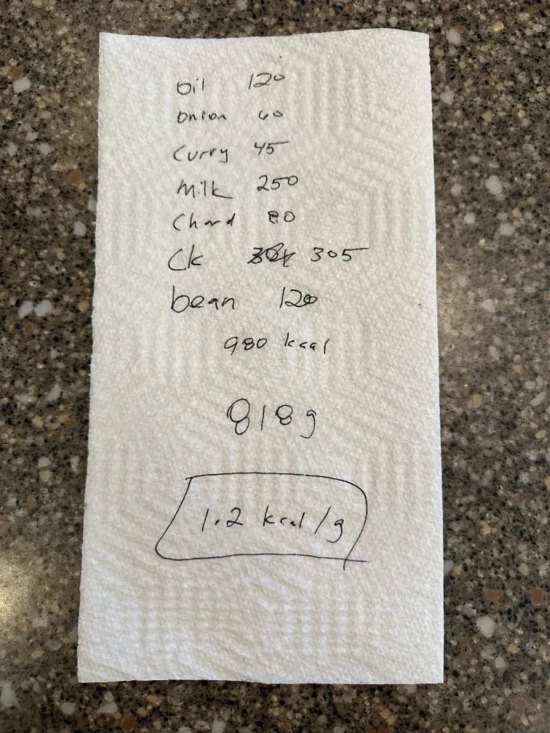 I would usually do this on a scrap of paper. But juggling paper, scales, and my phone was less than ideal.